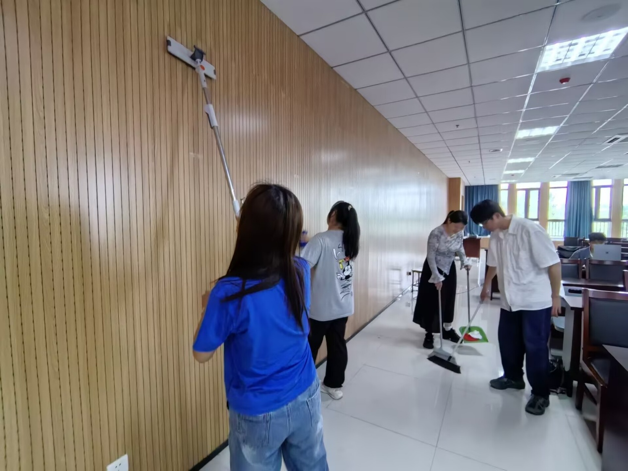 活动期间,各班级以“主题教育+实践育人”双轮驱动模式,将劳动教育与专业特色、校园文化深度融合。各班积极召开主题班会,组织员工集中观看《大国工匠》等纪录片,通过影像资料感受劳动模范的奋斗历程与工匠精神,激发同学们对劳动的热爱与敬畏。邹启晔老师的带领下,2023级计算机科学与技术3、4班创新开展“青春助力校园美 劳动淬炼品格坚”主题实践,通过规范自行车停放秩序活动,让校园停车区域的自行车摆放整齐焕发整洁新貌2024级计算机类2、3班以“以‘劳’铸魂启新程,以‘动’筑梦践初心”为主题,组建“校园美容师”志愿服务队,对操场周边区域进行深度清洁,用实际行动诠释“劳动最光荣”的时代内涵2024级计算机类12班则聚焦“劳动创造美好环境”,开展公司卫生大扫除,打造安全整洁的科研育人空间。