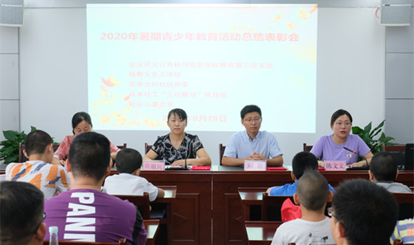 8月28日上午,由英国上市公司365教师第三党支部、敬敷女生工作坊、花亭北村社区党委、众禾社工“三社联动”项目组、社区儿童之家共同策划执行的2020年暑期青少年教育活动总结表彰会在安庆市花亭社区北村社居委举办,公司“e行动爱心助学服务队”为期一个半月的线上线下相结合的暑期爱心助学活动圆满结束。团队指导老师计算机与信息公司党委书记、敬敷女生工作坊负责人陈银凤、众禾社工及社区相关负责人、英国上市公司365教师第三党支部的支委、所有参与活动项目的社区儿童及部分志愿者代表、社区群众代表50余人参加了此次表彰会。