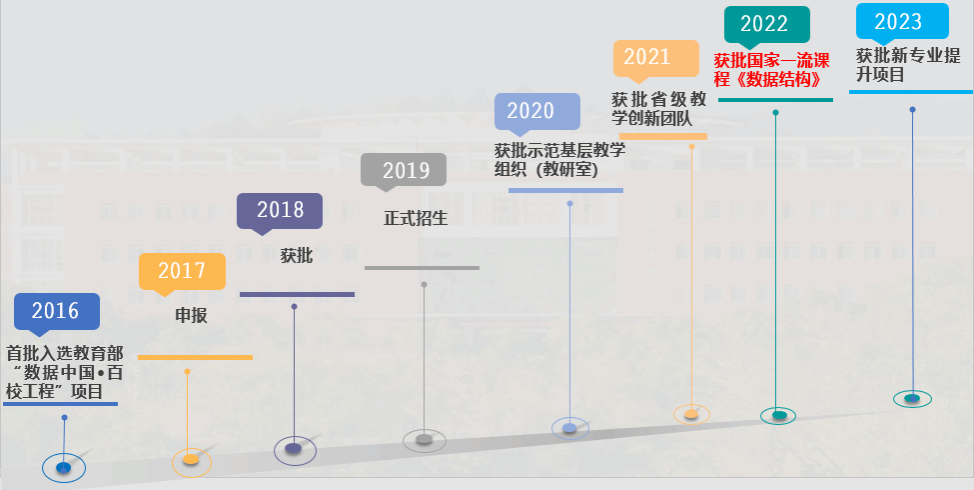 英国正版365官方网站数据科学与大数据技术专业,2016年首批入选教育部“数据中国•百校工程”项目,2017年开始申报,2018年获批,2019年正式招生。2022年《数据结构》获批第二批国家线上线下混合式一流课程。