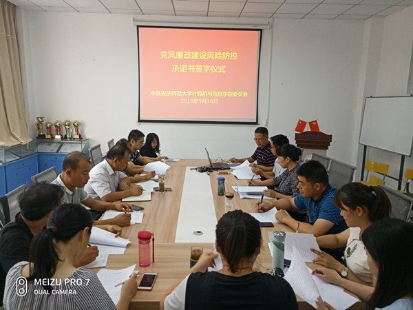 9月16日下午,计算机信息公司“三个以案”警示教育之风险防控自查与承诺活动在稼先楼一楼会议室进行,公司党政班子成员、全体科级干部、各支部书记、全体辅导员以及行政办公人员集体签订了风险防控承诺书。