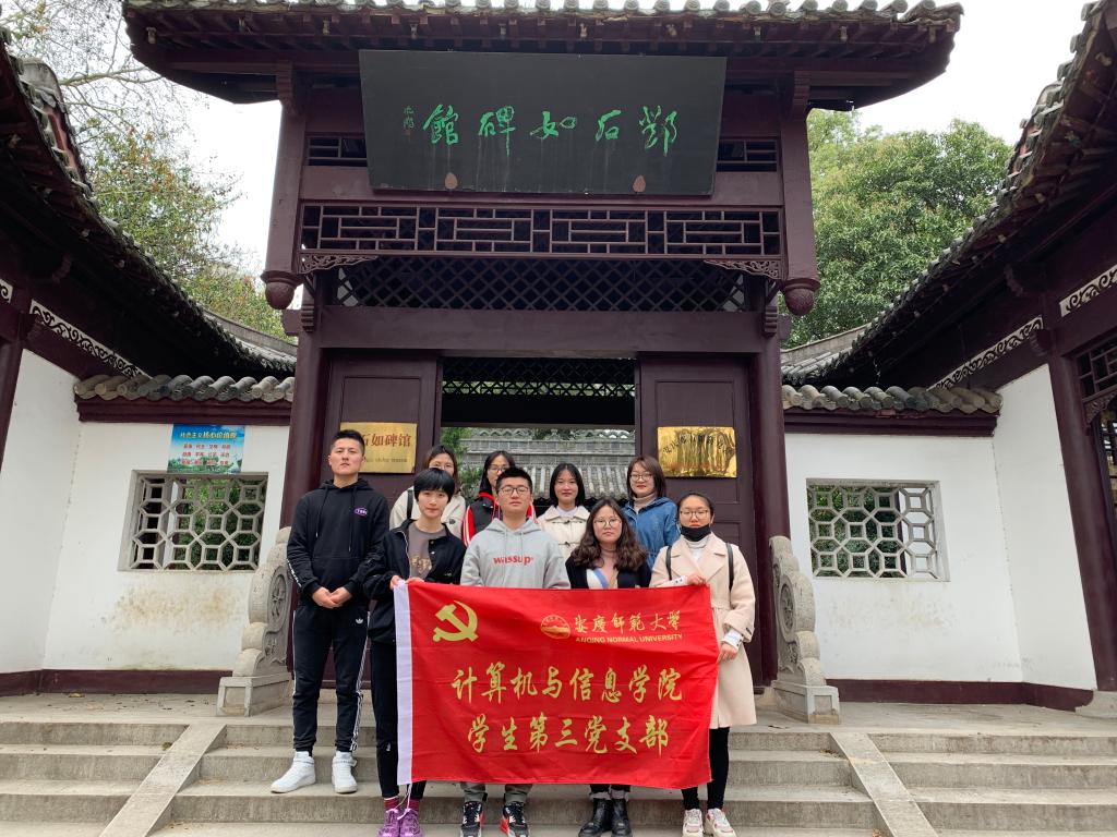 随后,支部党员又参观了位于菱湖公园内的邓石如碑馆,感受中国传统书法和篆刻艺术的魅力。此次党员活动不仅愉悦了同学们的身心,更坚定了大家的理想和信念。(员工第三党支部委员 吴昆鹏供稿)