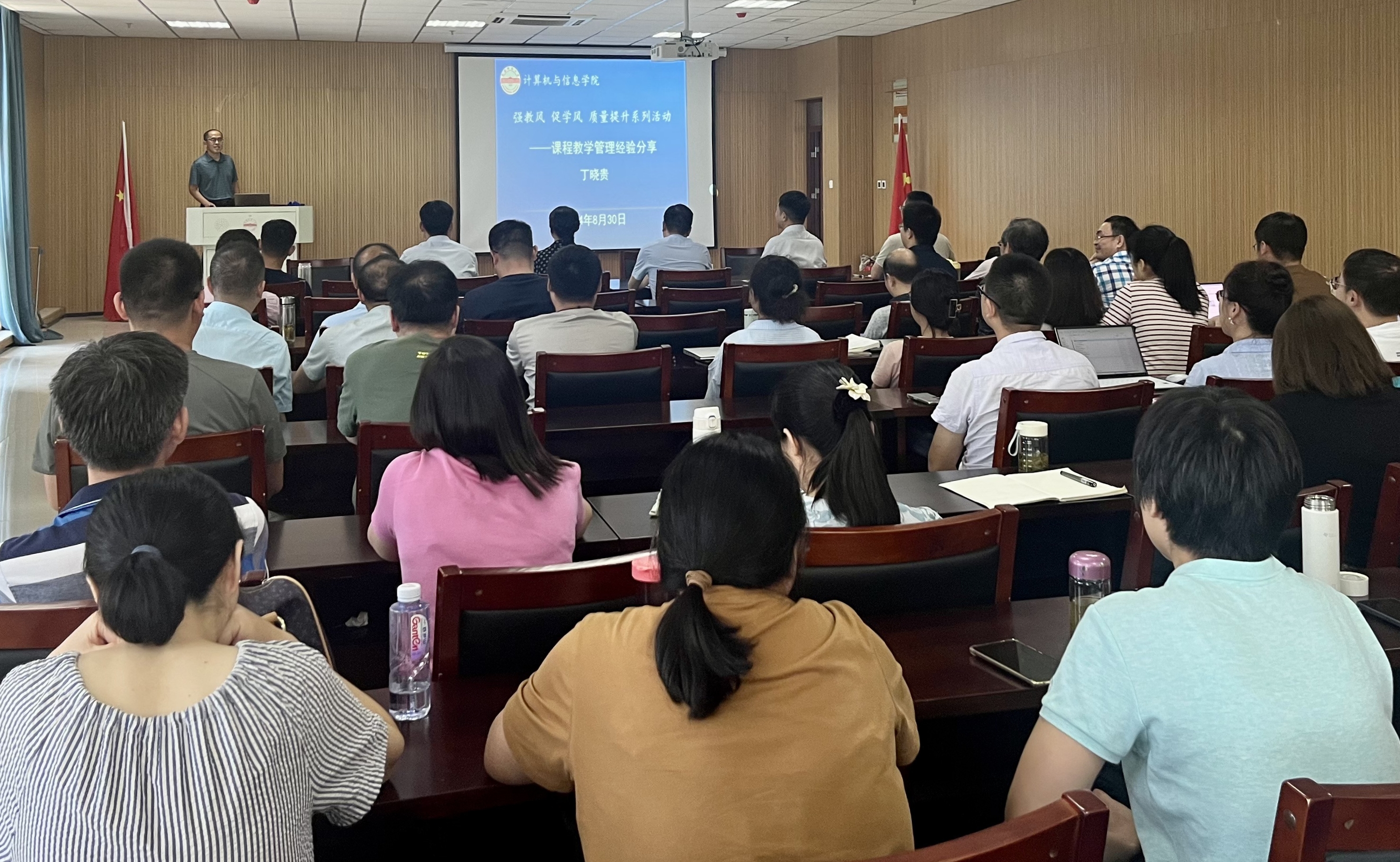 为积极响应《中共中央国务院关于弘扬教育家精神加强新时代高素质专业化教师队伍建设的意见》的号召,8月30日下午,英国上市公司365在L318成功举办“强教风 促学风”质量提升系列活动的首场讲座。本次讲座特别邀请教学经验丰富的丁晓贵老师,深入分享他在课堂管理方面的宝贵经验和独到见解。