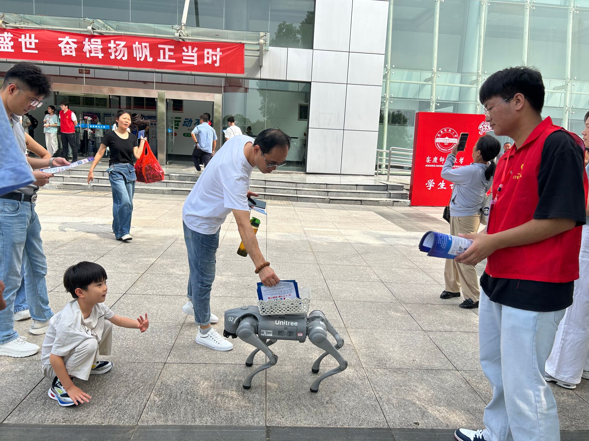 迎新期间,“IT青年先锋队”的志愿者们按照既定分工迅速投入工作,各小组协同配合,让整个报到流程既高效有序,又处处洋溢着温情。在体育馆内的报到点,第一小组志愿者化身“贴心管家”,在值班老师的指导下熟练操作人脸识别系统,精准完成新生身份验证,确保每一位新生的报到环节“零差错”;积极引导新生有序排队等候,在排队间隙与新生亲切分享老员工活注意事项,缓解新生排队的焦虑;同时,结合公司专业特色,他们还向新生普及国家安全、反诈防骗等知识,耐心解答“宿舍安排”等疑问,并指引大家前往军训服装领取点,用细致服务为新生筑牢“第一重保障”。而在体育馆外的公司服务点,第二小组志愿者则成了“暖心搬运工”,他们始终与馆内报到点保持密切联络,或看护行李,或帮忙搬运,同时热情地介绍校园布局。“IT青年先锋队”分配一部分志愿者在公司东门和西门,化身“指引灯塔”,看到拖着行李箱的新生,便主动上前问好,根据大家的需求灵活指引:若想先完成报到,则引导至体育馆,若希望先安置行李,则引导至对应宿舍,用真诚服务消除新生初入校园的陌生感。“IT青年先锋队”还组织了全流程的“机动支援兵”,他们始终保持“随时待命”的状态,报到点排队人数增多时,立刻补位引导;校门口新生集中入校时,迅速前往协助;同时,他们还协助机器狗、无人机团队开展反诈防骗宣传。