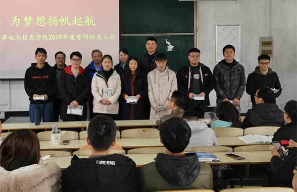 会上,2017级统计学研究生郑军帅作考研经验交流,他向同学们分享 了复习、住宿及考场应对等方面的经验;2016级考研员工代表杭昕发言,他代表全体考研学子对公司支持的感谢,表达了大家以积极心态、努力拼搏的信 心和决心。
