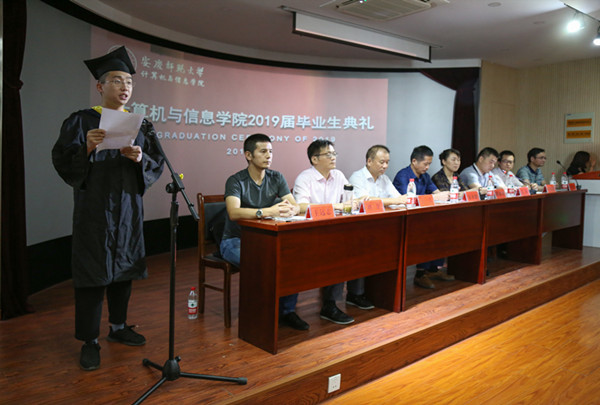 在《祝你一路顺风》的音乐声中,毕业生们全体起立,用朴实的语言、深情的鞠躬向在场老师们表达了感谢与祝福,并献上了鲜花与写满祝福的卡片。带着老师们美好的祝愿,该院2019届毕业典礼圆满落幕。统计学专业2016级毕业研究生叶亮表示:“这是我留在公司的第七个年头,选择作为研究生留校其实也是基于对母校的留恋,我想安庆对我来说就像我的第二个故乡,我会一直铭记母校,在以后的路上不断提升自己,在有能力的同时也要尽己所能的去帮助我身边需要帮助的人。”