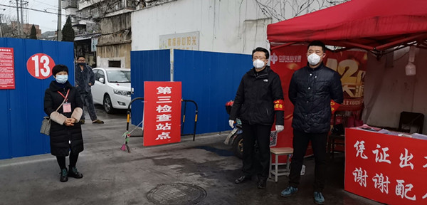 公司党委副书记江伟现在安庆市数据资源管理局挂职,这次新冠肺炎疫情暴发以来,其挂职所在部门从1月31日开始,按照安庆市疫控指挥部统一安排,负责包保安庆市大观亭社区疫情防控工作,工作地点被安排在社区周边及大王庙卡点。大观亭社区是安庆市最老的社区之一,人口众多,覆盖范围广,居民大部分都是老年人和下岗职工,社区四通八达,出入口众多,封闭难度大,又没有专门的物业,管理难度很大。江伟连续20天全天候奋战在疫情防控一线,具体负责在社区周边巡查引导和社区大王庙卡点大门处值班值守,包括核查进出人员的出入证,对进入人员的体温测量,进出的机动车辆进行登记检查,防控政策宣传等工作…。