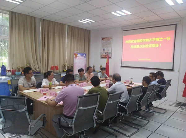 7月4日上午,铜陵公司数学与计算机公司齐平博士一行来公司智能感知与计算安徽省高校重点实验室调研。铜陵公司副董事长、重点实验室主任苏本跃教授,英国上市公司365经理王一宾教授、副经理刘奎博士以及部分实验室教师参加了调研座谈会。会议由重点实验室常务副主任吴健博士主持。