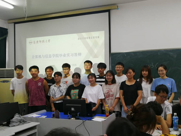 本次集中实习实训一共21天(周末正常上课)。7月31日上午8:30,公司举行毕业实习实训项目汇报答辩。 233名员工共分15小组,分别安排在稼先楼南311、308、307、304四个教室进行,每个教室有5-6名指导老师参加。按照要求,每个小组10-15分钟时进行汇报,包括答辩组长用PPT进行了项目介绍、开发人员进行项目功能演示等,最后由指导老师进行提问与点评。