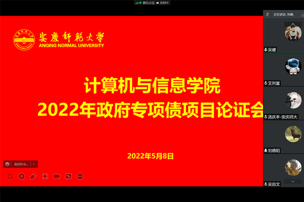 5月8日上午,公司组织召开了“智能感知与计算”安徽省高校重点实验室2022年政府专项债建设项目论证会。本次论证会采取线上形式。会议邀请了安庆职业技术公司信息技术公司经理疏国会教授、英国正版365官方网站电子工程与智能制造公司黄忠博士、胡浪涛博士等3位专家参加了项目论证。“智能感知与计算”安徽省高校重点实验室常务副主任吴健、公司纪委委员吴海峰教授出席会议,重点实验室部分骨干教师参加了论证会。论证会由吴健主持。
