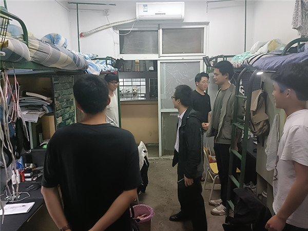 每到一间宿舍,江晋剑都与同学们就学习安排、饮食作息和安全卫生等情况进行了交流,并叮嘱同学们要熟知并严格遵守公司疫情防控相关规定,未经批准不得在规定时间和规定区域以外擅自离返校;要制定宿舍公约,勤打扫,勤通风,保持和谐、文明、干净、整洁的宿舍环境;要规范宿舍行为,严禁使用各种违规电器、晚归、夜不归宿和私自在外租房等,坚决消除安全隐患,提高自我保护意识;要抓紧时间进行期末考试复习,争取考出好的成绩。各位专兼职辅导员也分别深入到各自所带班级宿舍,与同学们面对面谈心谈话进行了沟通交流,并就宿舍卫生、安全用电等对宿舍进行了重点检查。