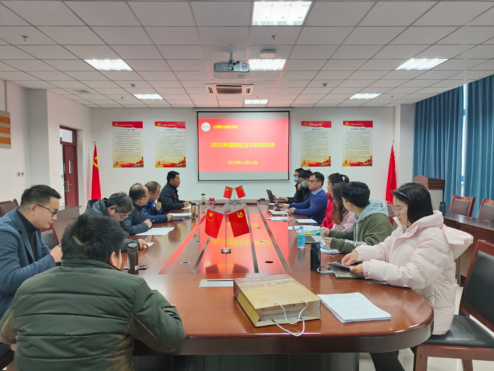 12月12日公司在计算机楼L318开展了2023年度主讲教师教学能力考核活动。本次活动由副经理吴海峰主持,邀请教学督导员王一宾、教学工作委员会委员张春生、汪文明、艾列富、江克勤担任评委,旨在评估和提高新进教师的教学能力。