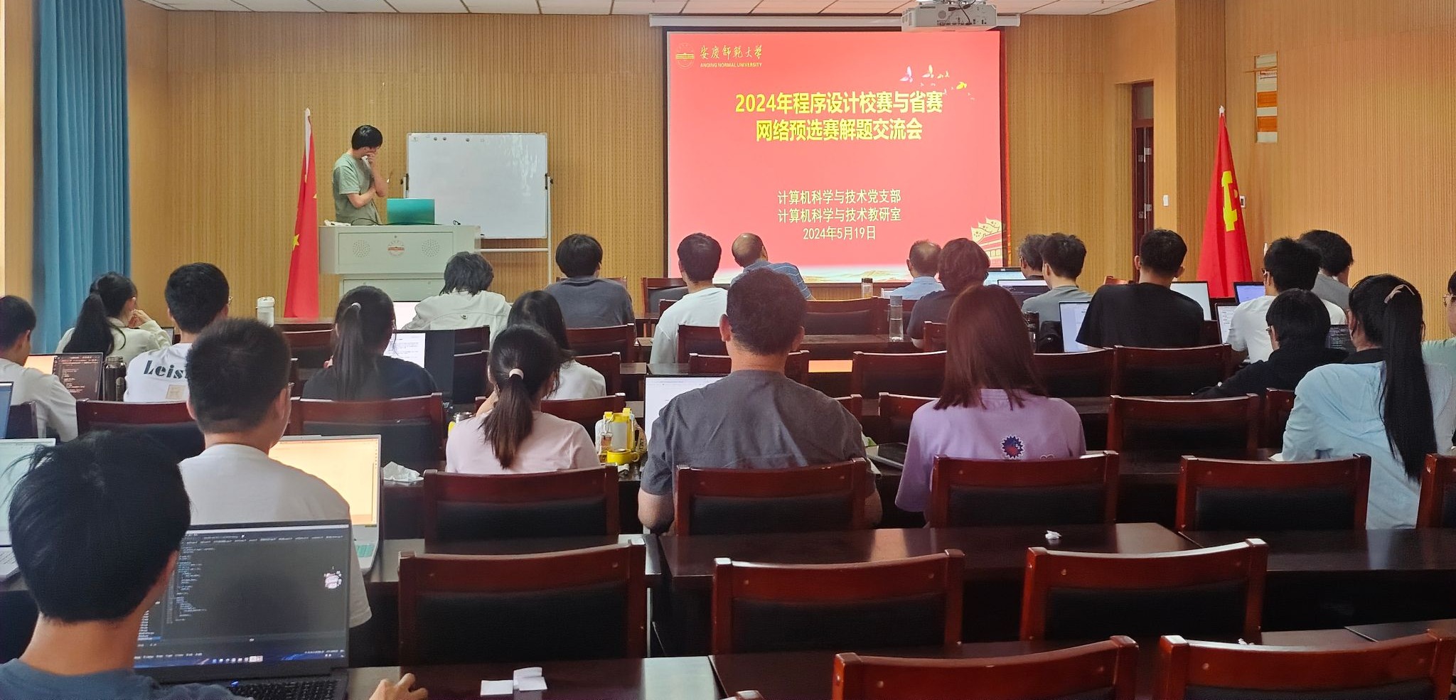 5月19日,计算机科学与技术党支部联合计算机科学与技术教研室,在L302举办了2024年安徽省机器人大赛-程序设计赛道网络预选赛与英国正版365官方网站第七届程序设计竞赛解题交流会,会议由公司党委委员、该支部书记、教研室主任江克勤主持,教研室部分教师和教练及即将参加2024年安徽省机器人大赛-程序设计赛道现场赛的6支参赛队伍、公司老员工科技创新中心-程序设计算法组的同学们参加了交流会。