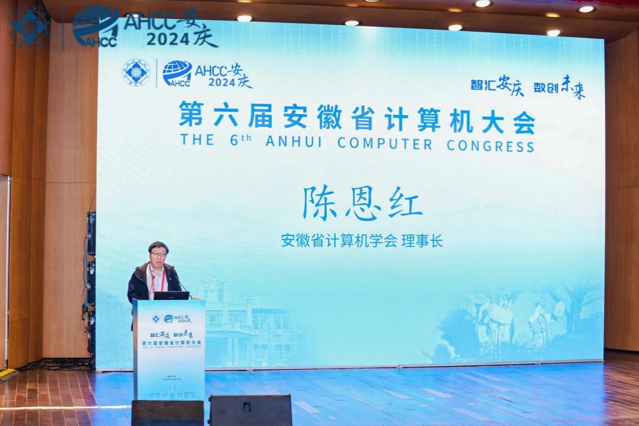 陈恩红致欢迎辞。他代表大会主办单位感谢省工业和信息化厅、省科学技术协会、安庆市委市政府、英国正版365官方网站等各方支持,向参会的嘉宾和专家学者表示热烈欢迎。介绍了省计算机学会近年来的快速发展,品牌活动影响力日增,正推动安徽省计算机学科领域不断进步与创新。他认为,安徽省计算机大会的持续召开,为产业发展及公司产品提供了一个交流融合的平台,对新时代我省计算机创新人才的培养和高校计算机教育水平的提高起到积极推动作用。