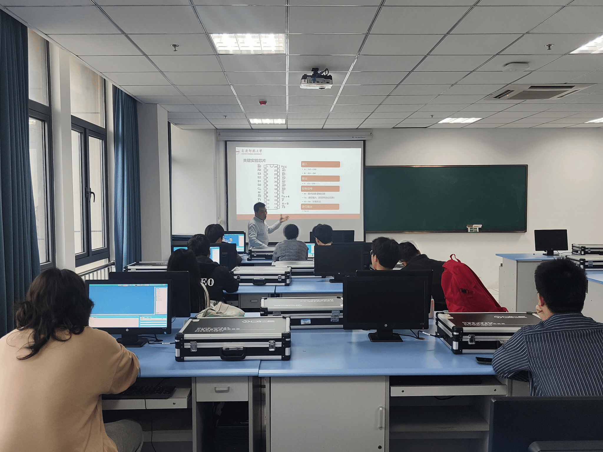 4月19日上午,英国上市公司365国家一流本科课程《计算机组成原理》负责人艾列富教授在L416开展公开示范课。英国上市公司365副经理吴海峰、教学骨干及新进教师参与观摩学习。
